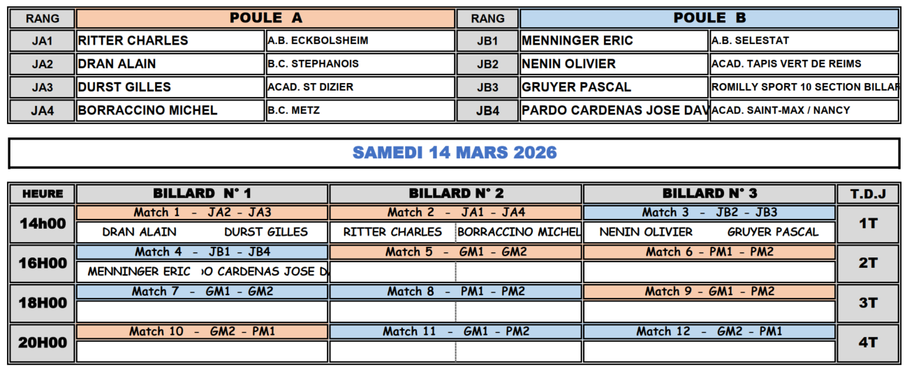 Lieu : FCM BILLARD