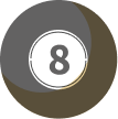 Le jeu de la 8 se joue avec la bille blanche et les billes numérotées de 1 à 15. Chaque joueur doit toucher en premier une bille de son groupe, soit les billes pleines, soit les billes cerclées.